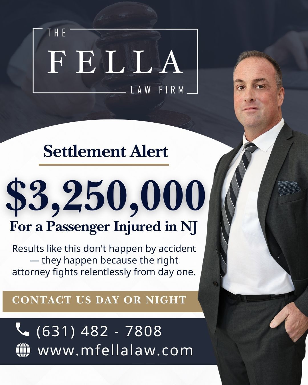 When an accident happens out of state, it doesn't mean you're out of options. Attorney Matt Fella proved exactly that — securing over $3.25 million for a local Suffolk County resident injured as a passenger in a two-car motor vehicle accident in New Jersey.